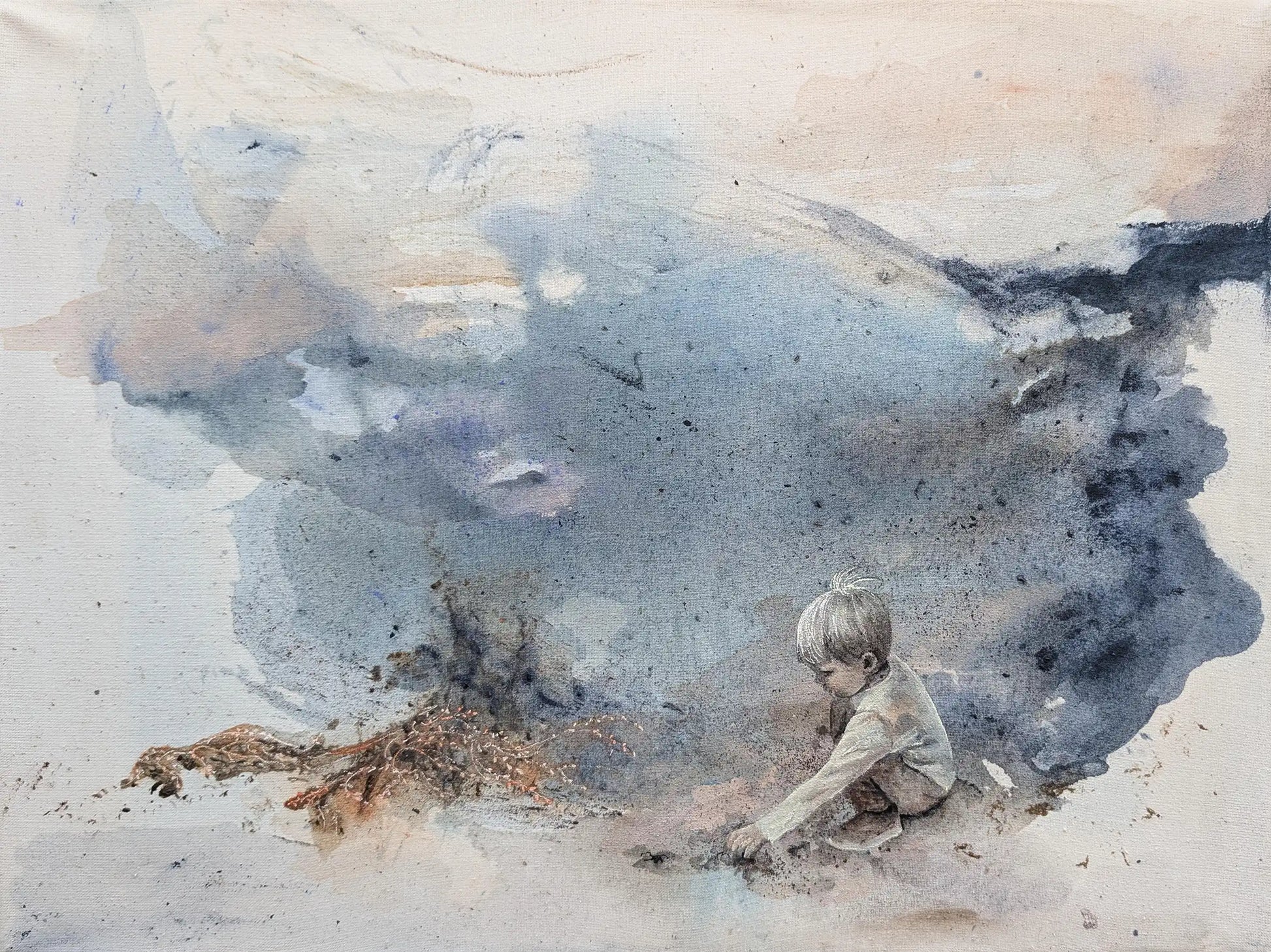 Originalt maleri fra serien Gutten og hans hav, signert av kunstner.